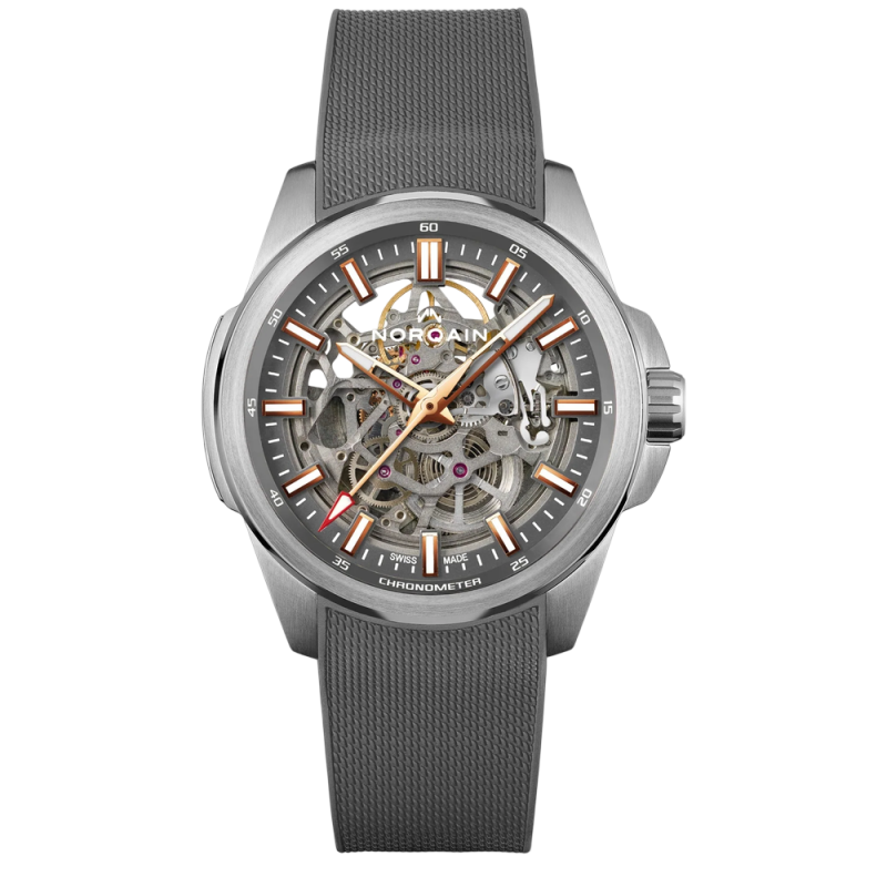 Movement NORQAIN Calibre N08S Mechanical automatic skeleton movement Chronometer certified (COSC) 26 rubies Personalised NORQAIN oscillating weight 41 hours power reserve Balance frequency: 28’800 vibrations per hour (4Hz)